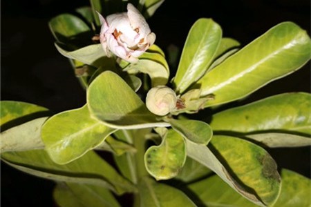 1、原因:沙漠玫瑰不耐寒,喜欢温暖的环境,若是长时间在温度较低的地方生长,它的叶子就会被冻黄。