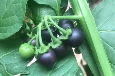 龙葵,在东北被人亲切的叫做黑天天,植株不高,却能在茎节间着生许多绿色的小浆果,等这些浆果变成黑色,就说明它已经成熟可以采收食用了,吃起来味道酸酸甜甜的。