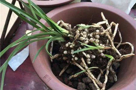 3、进行栽植:将配制好的基质取出来,往透气性好的花盆里面装入一层。然后将兰株取出来,轻放到新的花盆里面。之后,用剩余基质将花盆填至九成满或者全满,保证兰株可以正常直立,并且根系全部处于土面以下。之后,将它放在一个通风、半阴的凉爽环境中,适时喷水保湿,等它成活即可。